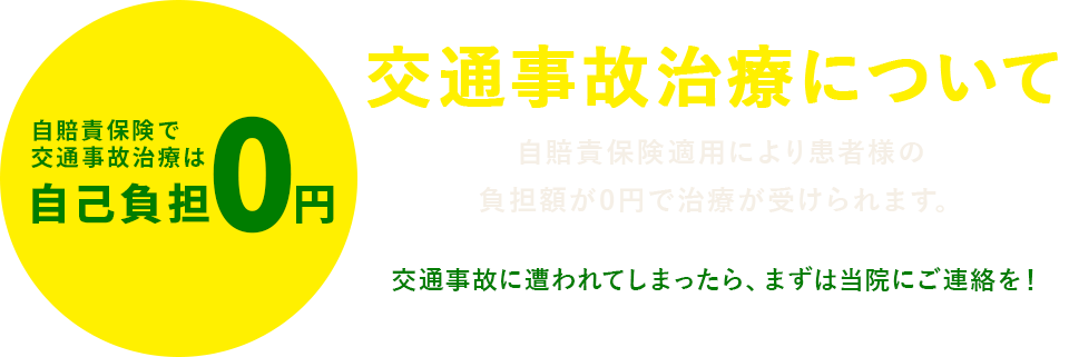 交通事故の患者様のみPM9:00まで受付していますので仕事帰りでも安心して通院出来ます。